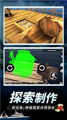 游戏采用动态资源收集系统,漂流的塑料瓶、破损木板等物资将考验玩家的即时决策能力。通过升级制作系统可解锁净水装置、渔具套组等生存必需品,三维建造模式支持玩家打造多层海上基地。值得注意的是,木筏扩建需遵循流体力学规则,超出承载能力的建筑将影响航行效率。