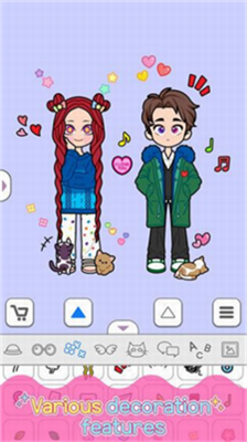 双角色造型系统突破传统换装模式,玩家可同时为男女主角设计互补造型。发型染色功能支持RGB调色盘精准调色,独创的饰品叠加系统最多支持单部位佩戴5件装饰,耳坠、项链、手链可自由组合呈现层次美感。