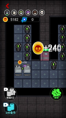 1、独创双线发育机制,在升级床铺获取金币与建造炮塔防御间保持动态平衡