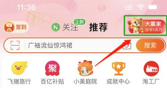 1. 启动手机淘宝客户端后,用户可在首页顶部搜索栏右侧发现显眼的【大赢家】图标。该标识采用动态视觉设计,配合618主题色系呈现,确保用户第一时间捕捉到活动信息。