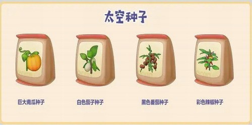 土伯伯本次携带四类特殊作物种子:闪烁着金属光泽的太空茄子、呈现渐变星云色的番茄、自带发光纹路的南瓜以及棱角分明的彩椒。这些经过宇宙射线照射的种子具有缩短成熟周期、提高产量等特性,收获后可在土伯伯处兑换限定版航天主题服饰。