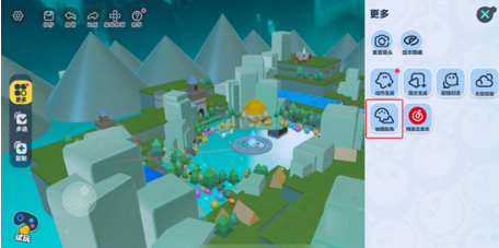 1、进入游戏编辑界面后,点击右下角功能栏的"更多"选项,在弹出的二级菜单中找到"地图配色"功能入口,点击即可开启色彩编辑面板。