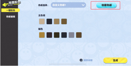 2、在配色管理界面中,定位到"一键配色"模块。初次使用时需点击"创建色板"按钮,系统将自动生成基础配色模板,此时可开启自定义编辑模式。