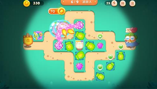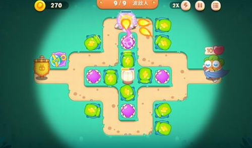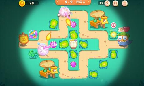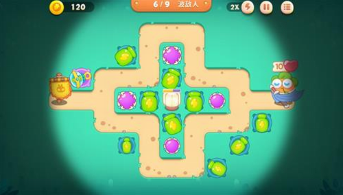 二至四关的核心任务是高效清除障碍物,建议采用瓶子炮与魔法球的组合配置。左侧通道可增设泡泡机制造缓速区域,通过双重控制延长敌人滞留时间。障碍物清理顺序应优先选择可扩展布防空间的关键目标。