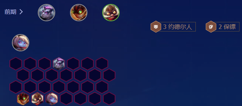 首轮选秀优先攻速或大棒,法爆与巨杀作为核心输出装需优先合成。2阶段推荐3约德尔开局,配合两星波比与双保镖构筑前期防线。若质量不足则转连败养经济,通过3约德尔稳定获取经济收益,3-2阶段启动前需保持50金币基准。