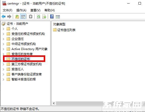 在命令行界面输入certmgr.msc指令后,系统将调出证书管理控制台。该工具包含受信任根证书颁发机构、中间证书颁发机构等多个分类目录,用户需要重点查看不受信任的证书存储区域。