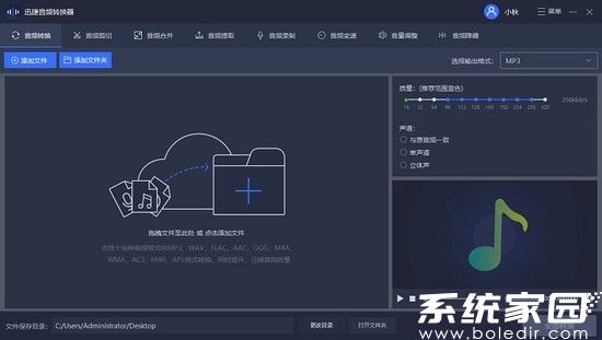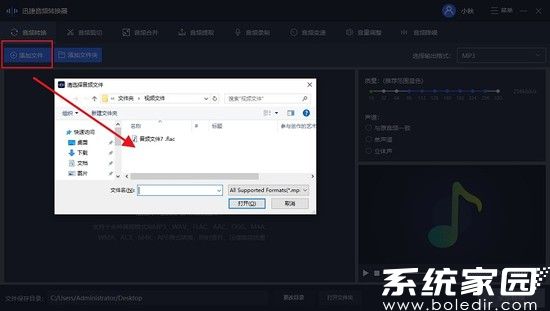 对于需要处理特殊格式的用户,推荐使用第三方音频处理工具。以迅捷音频转换器为例,启动软件后默认进入音频转换模块。通过界面左上角的【添加文件】按钮可导入QQ音乐下载的各类音频文件,系统支持整文件夹批量导入功能,大幅提升多文件处理效率。