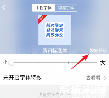 5. 在个人字体管理界面,系统会高亮显示正在使用的非默认字体。滑动屏幕至底部可发现「恢复默认」功能按钮,该操作无需二次确认即可立即生效。