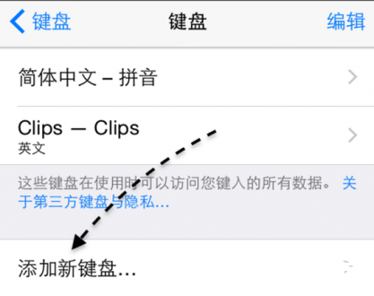 4、二级键盘管理界面会显示已启用的所有输入法,在此处点击顶部「键盘」字样时需注意手势操作:长按可触发3D Touch快捷菜单(仅支持特定机型),普通点击即可进入编辑界面。